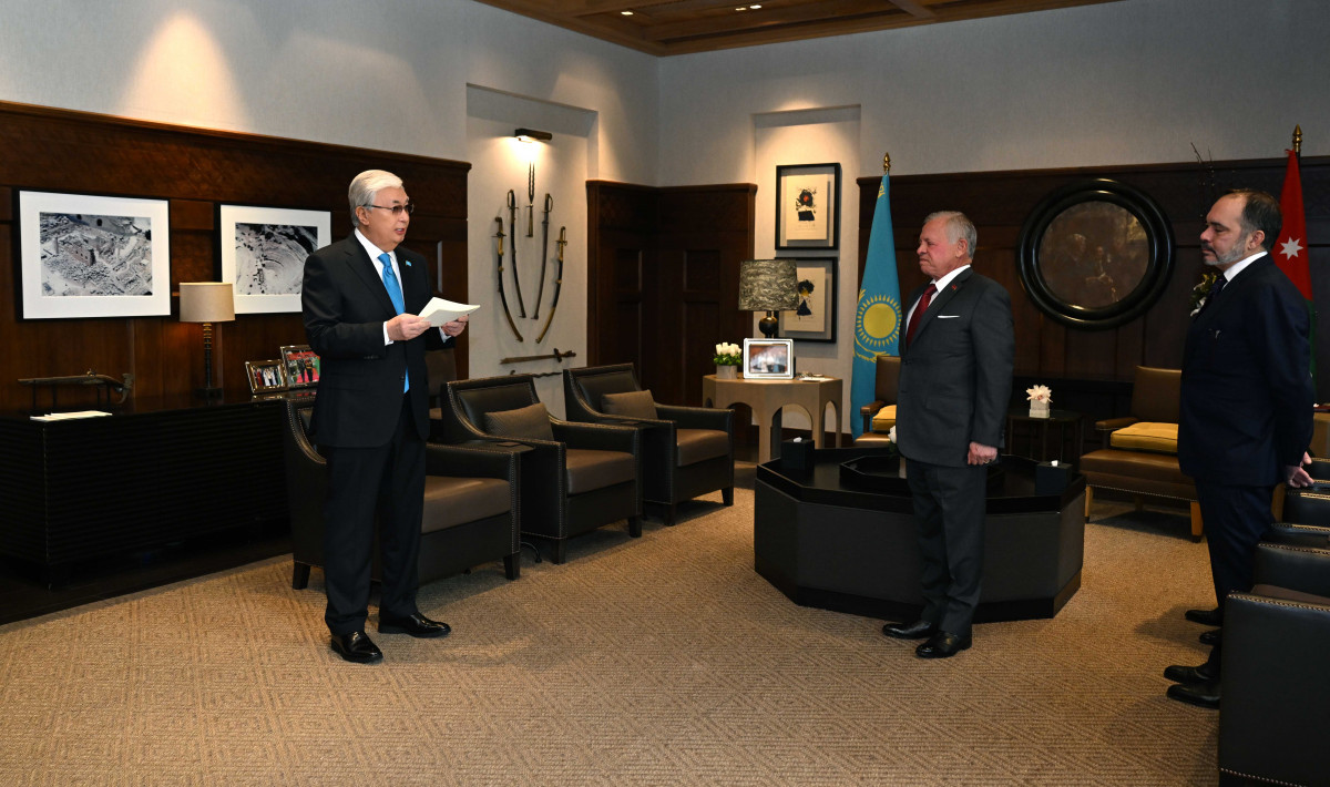 – Ұлы Мәртебелі Корольдің айнымас ниетінің арқасында біз экономика мен инвестициялық ықпалдастықтан бастап мәдени және білім салаларына дейін өзара мүддемізге сай келетін ынтымақтастығымызды нығайттық. Аса көрнекті мемлекет қайраткері, бейбітшіліктің қорғаны әрі даналықтың үлгісі ретінде Сіздің ісіңіз әлемдегі көп адамға жігер береді. Қазақстан халқы Сізді ерекше құрметтейді. Иорданияның тек серіктес қана емес, нағыз достас ел екенін мақтан тұтамыз. Ұлы Мәртебелі Корольдің байыпты басшылығымен Иордания өңірдегі тұрақтылықты, дінаралық диалогты және гуманитарлық қызметті ілгерілетуде шешуші рөл атқарып отыр. Бұл құндылықтар Қазақстанның бейбітшілікті, толеранттылық пен дипломатияны жақтайтын ұстанымына сай келеді. Сіздің зор күш-жігеріңіз бен ұдайы қолдауыңыздың арқасында біз өзара ынтымақтастығымыздың келешегіне зор үмітпен қараймыз, – деді Мемлекет басшысы.