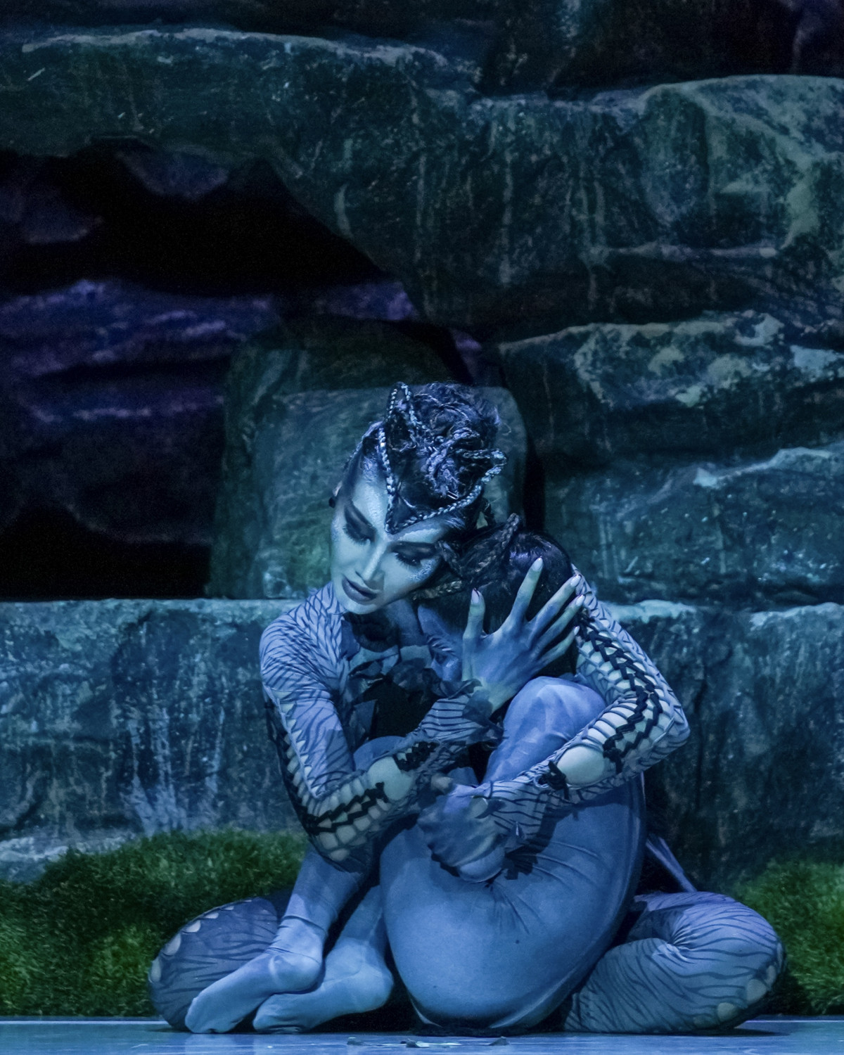 Спектакль эпикалық сюжетті сахналауда заманауи әдістерді қолдануымен ерекшеленеді. Қақтығысты шиеленістіре түсіп, көріністі көркейтіп, көрермен қауымның кейіпкерлердің қуаныш-қайғысына барынша ортақтасуына сеп болуы үшін авторлар туындыға тың иірімдер қосты. Соның ішінде, балеттің көркемдік кестесіне көне түркі мифологиясы мен космогониясының жұрнағын жалғады. Сахнада көшпелі мәдениет әдемі бейнеленген. Тағы бір ерекшелігі – көне түркі мифологиясының бейнесі – бөрінің бейнесі де жақсы сомдалған.