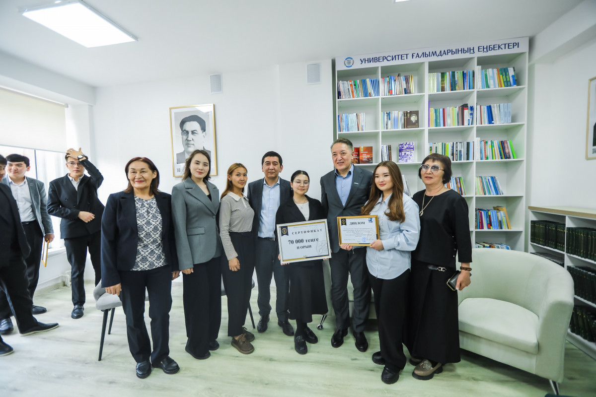 Кездесу соңында аталған білім ордасында ұйымдастырылатын дәстүрлі «Kitap – Qazyna» жобасының жеңімпаздары марапатталды. Сондай-ақ университет проректоры Нұржан Жетпісбаев осы білім ордасының тұңғыш ректоры, академик Ебіней Бөкетовтің 100 жылдығына орай ғалым туралы жарық көрген құнды кітап тарту етті.