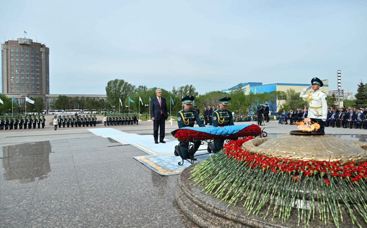 Мемлекет басшысы Ұлы Жеңістің 80 жылдығына орай елордадағы «Отан Ана» монументіне гүл шоғын қойып, қазақстандық майдангерлердің рухына тағзым етті, – деп хабарлайды Aikyn.kz сайты.