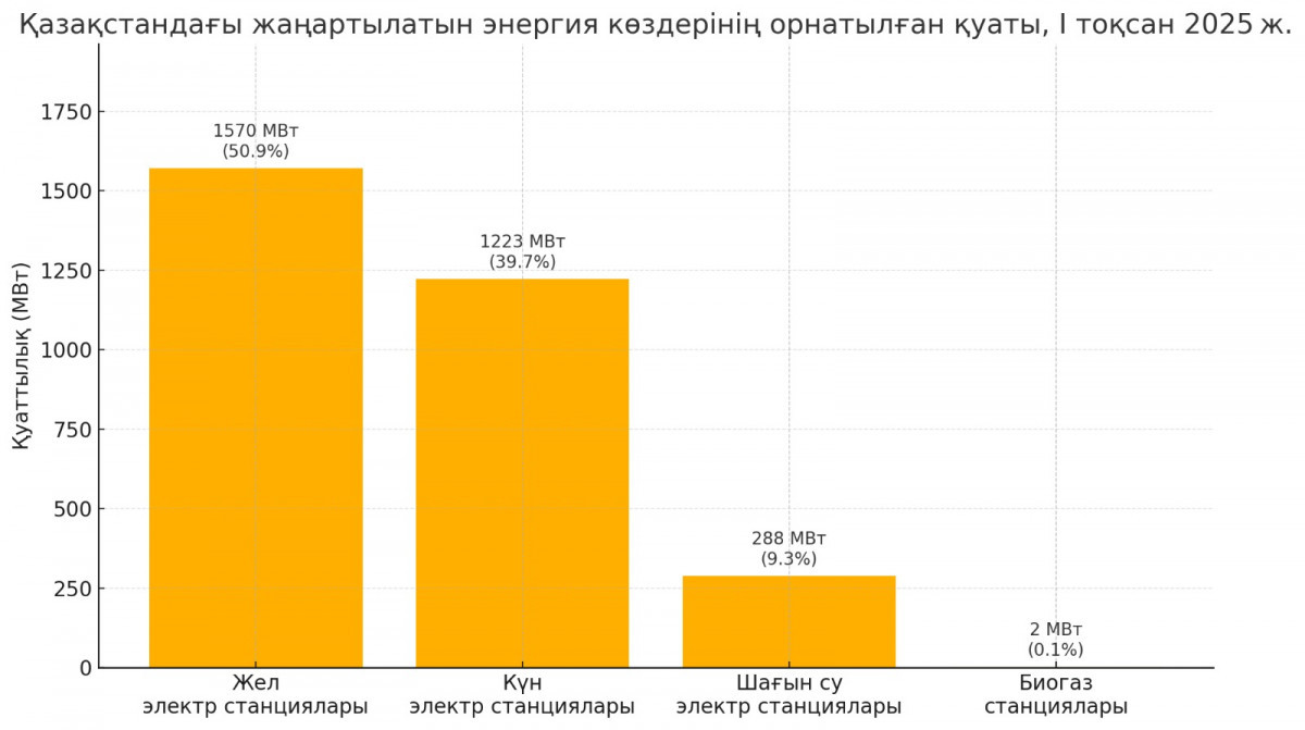 Осыдан бірер жыл бұрын Қазақстанда жаңартылатын энергиядан өндірілген 6,1 ТВт/сағ қуаттың 39%-ын жел энергетикасы қамтамасыз еткен. Бұл – барлық ЖЭК ішіндегі ең жоғары үлес. Демек Қазақстанның аталмыш салада потенциалы жеткілікті деуге толықтай негізіміз бар.