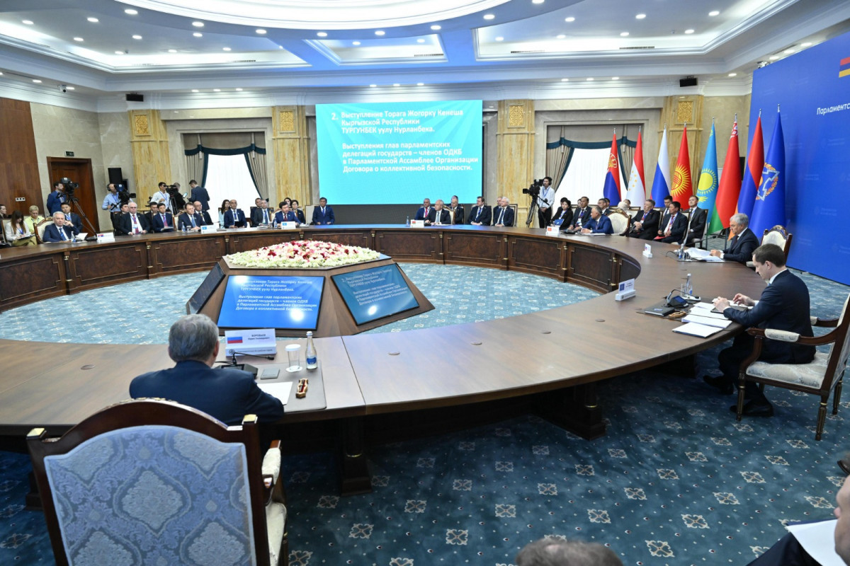 Ерлан Қошанов ҰҚШҰ Парламенттік Ассамблеясы Кеңесінде сөйлеген сөзінде Жогорку Кенеш Төрағасы Нурланбек Шакиевке 2025 жылы Қырғыз Республикасының Ұйымға төрағалығы аясындағы басымдықтарды жемісті жүзеге асыруына тілектестік білдірді.
