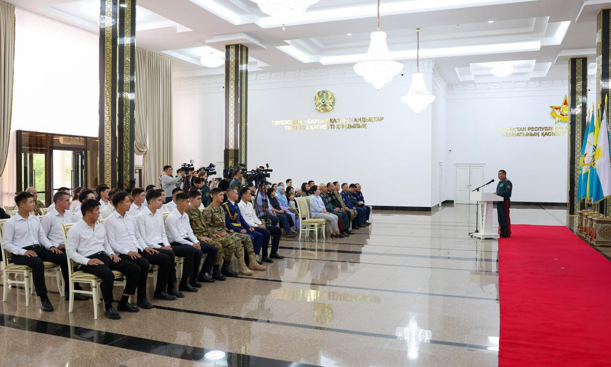 – Конкурстық іріктеуге Қарулы Күштердің, Мемлекеттік күзет қызметінің, Төтенше жағдайлар министрлігінің, Ұлттық қауіпсіздік комитеті Шекара қызметі мен Ұлттық ұланның әскери бөлімдерінде белгіленген мерзімде қызмет еткен 17 500-ден астам сарбаз қатысты. Араларыңызда әскери оқу орындарына түсіп, офицер болуға шешім қабылдағандардың барына қуаныштымын. Бұл армиядағы қызмет жауапкершілік, тәртіп және патриотизм сияқты қасиеттерді қалыптастырғанын білдіреді. Оқуда да, қызмет ету кезеңінде де жоғары нәтиже көрсететіндігіңізге күмәнім жоқ, – деп атап өтті генерал-майор Шайх-Хасан Жазықбаев.