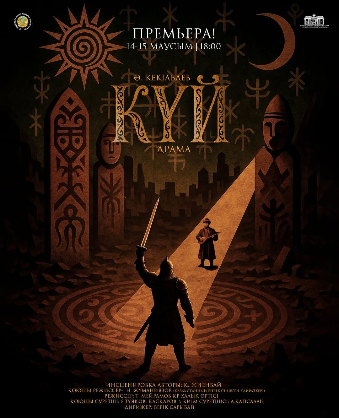 Инсценировка авторы – Қуаныш Жиенбай. Қоюшы режиссері – Қазақстанның еңбек сіңірген қайраткері Нұрлан Жұманиязов. Режиссері – Қазақстанның Халық артисі Тілектес Мейрамов. Қоюшы суретші – Ерлан Тұяқов, Ерзат Асқаров. Киім суретшісі – Ақбота Қапсалаң. Хореограф – Карина Джиренбаева. Жарық қою бойынша суретші – Азамат Бекбембетов. Спектакль театрдың халық аспаптар ансамблінің сүйемелдеуімен өтеді. Дирижер – Берік Сарыбай. Композитор – Темірлан Шөкенов, Нұрболат Сахы.