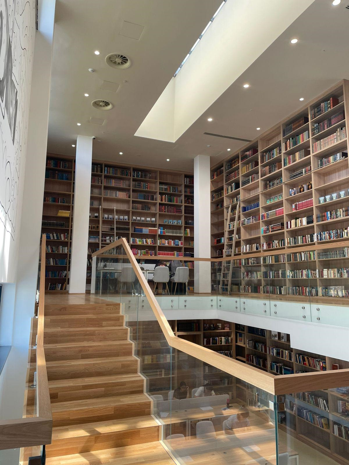 Әлеуметтік желіден көріп, біз де бардық сол кітапханаға. Кітапқа үңілгендер де, ғимараттың құрылысына таңданып жүргендер де көп. Жаңа кітапхананың көркі көз тартады. Стилі де бөлек, кең әрі заманауи үлгіде салынған. Бізді қарсы алған кітапхана қызметкері Ұлбибі Мұстапаева, ең алдымен, сөрелерді толтырған кітаптар туралы айтып берді. Айтуынша, мұнда 20 мыңнан астам кітап бар, оның 6 мыңға жуығы – балалар әдебиеті. Облыстық және жергілікті бюджеттің тұрақты қаржыландыруымен оқырманның сұранысындағы кітаптар сатып алынады. Мұндай жұмыстарды кітапхананың жинақтау-өңдеу бөлімінің мамандары жүзеге асырады. Кітапхана директоры Сымбат Бауыржанқызының айтуынша, оқырман сұранысындағы кітаптар арнайы сатып алынып отырады.