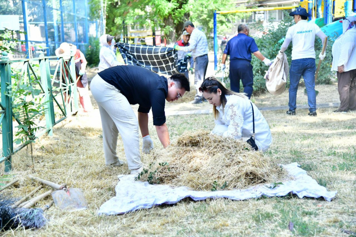 Шымкент қаласының Тұран ауданында «AMANAT» партиясының қалалық филиалы ұйымдастырған тазалық жұмыстарына 30-ға жуық белсенді қатысып, көпқабатты үйлердің аулаларын қоқыстан тазартты. Ардагерлер мен жастар бірлесіп, шөп шауып, бұтақ кесіп, тұрғындарға қолайлы орта қалыптастырды.