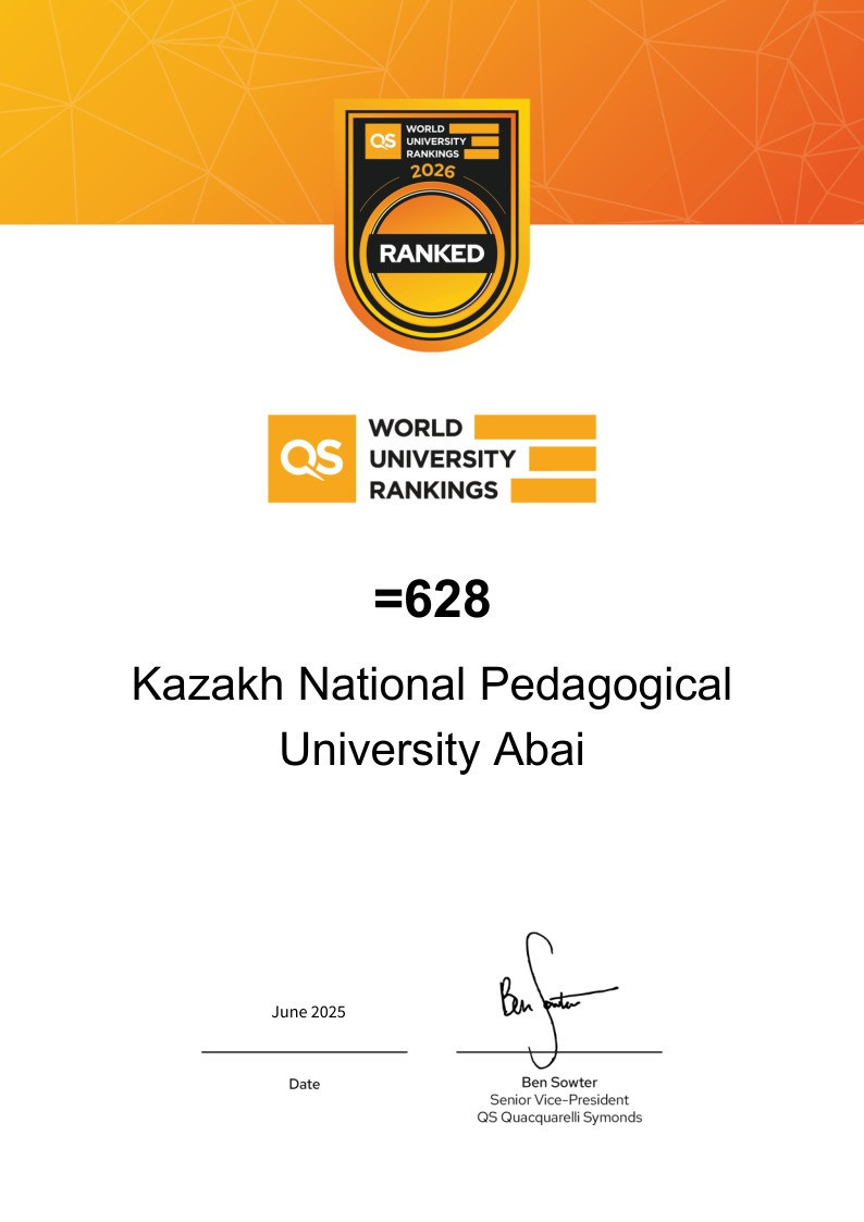 QS World University Rankings 2026 нәтижесінде Абай атындағы Қазақ ұлттық педагогикалық университеті 628-орынға көтеріліп, былтырғы көрсеткішпен салыстырғанда бірден 43 сатыға ілгеріледі. Бұл – университет тарихындағы ең ірі серпілістердің бірі, – деп хабарлайды Aikyn.kz.