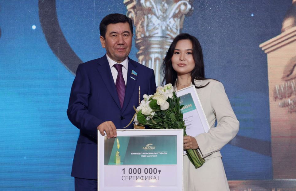 1. «Еліміздегі реформалар туралы үздік материал» номинациясы – «Tengrinews.kz» сайтының тілші-редакторы Аружан Дәрібай;