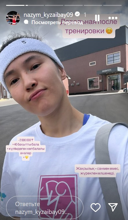 «Жаттығудан кейін өзіме тәнті болып келе жатырмын. Минус 2 миллион, 40 бақытты бала + күлімдеген көпбалалы ата-аналар. Жақсылық санмен емес, жүрекпен өлшенеді», - деді боксшы.