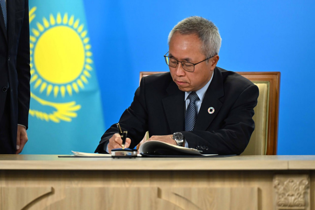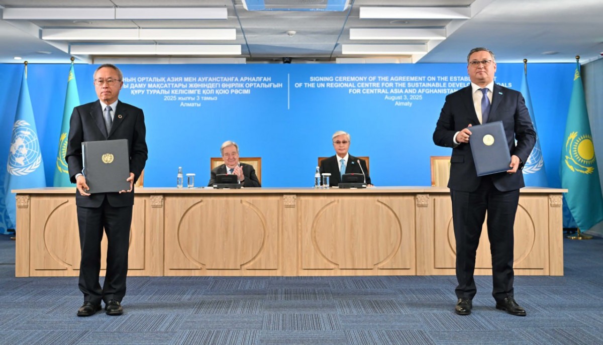 Мемлекет басшысы мен БҰҰ Бас хатшысы Қазақстан Үкіметі мен Ұйым арасында БҰҰ-ның Орталық Азия мен Ауғанстанға арналған орнықты даму мақсаттары жөніндегі өңірлік орталығын құру туралы келісімге қол қою рәсіміне қатысты.