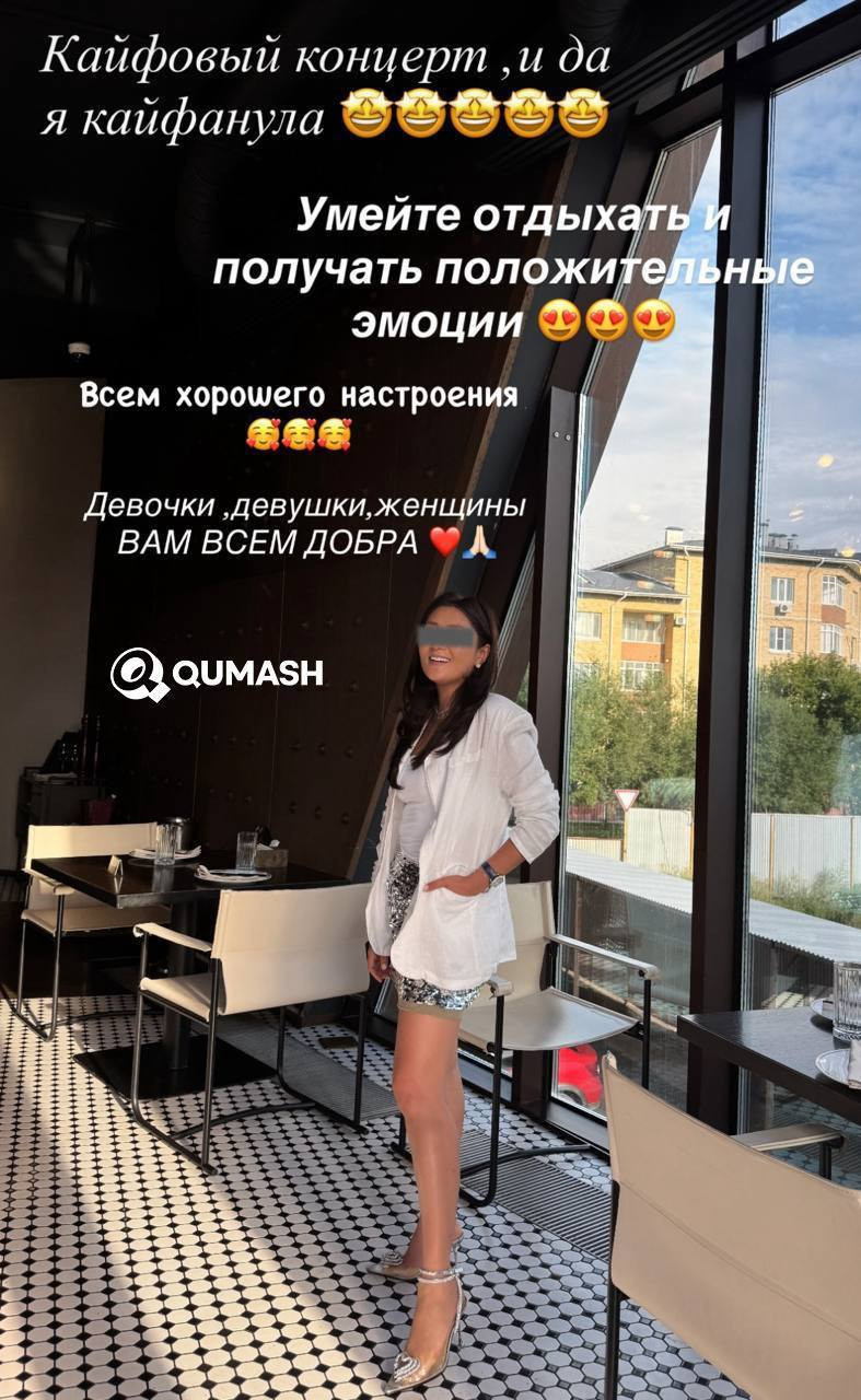 Куәгерлердің айтуынша, Зарина есімді әйел басқа қонақтарға кедергі келтіріп, шу шығарған. Қауіпсіздік қызметкерлері оны залдан қолмен көтеріп алып шыққан.