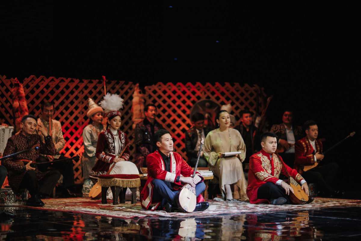 Алдымен сахна пердесі жабық тұрды. Залда тыныштық орнады. Бір мезетте «Көзімнің қарасы» әуені сыңғырлап шыға келді. Сахна шымылдығы ақырын ашыла бастады. Қазақы нақышқа толы сахна, жансыз әлем емес, тірі тынысы бар кеңістік. Сол сәтте ерекше бір құпия ашылғандай болды, “Көзімнің қарасын” шертіп отырған үні бөлек, қоңыр әуенді үш ішекті домбыра екен.