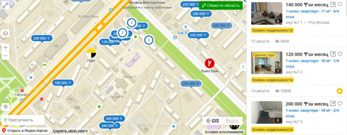 Krisha.kz жылжымайтын мүлік сату бөлімінің жетекшісі Имран Османовтың айтуынша, әсіресе Алматыда студенттер тарапынан сұраныс үнемі жоғары.