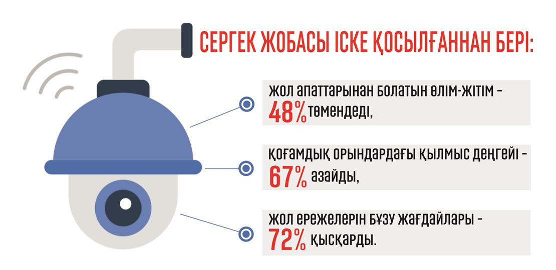 2017 жылдан бері іске қосылған «Сергек» жобасы жол қозғалысының мәдениетіне айтарлықтай ықпал етті. Әсіресе, жол апаты жиі болатын қиылыстарда тәртіп күшейді, жылдамдықты шамадан тыс асырғандар азайды. Ішкі істер министрлігінің дерегінше, камера орнатылған аймақтарда апат саны 30-40 пайызға төмендеген.