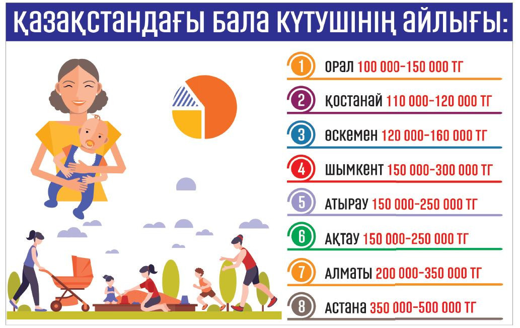 Негізінен, ата-аналар күтушілерді 1 жастан 3 жасқа дейінгі сәбилерге іздейді, ал бірге тұру шарты сирек ұсынылады. Міндеттеріне ойын ойнау, балаға күтім жасау және қадағалау кіреді. Ал үлкенірек балаларға күтушілерді көбіне балабақшаға, мектепке немесе үйірмелерге апарып-алып келу үшін жалдайды. Бала күтушілерінің көбі бірнеше сағат жұмыс істейді. Ең қолжетімді сағаттық ақы Қостанайда тіркелген, мұнда күтушілердің қызмет құны жолға шығуымен немесе онсыз 800-1500 теңге шамасында. Агенттіктердің бағасы – 2 500 теңге/сағат. Егер қосымша үй шаруасына көмектесу қажет болса, ол күніне 5000-10 000 теңгеге дейін барады, тапсырмалардың көлеміне қарай. Ал айлық төлем орта есеппен 110-120 мың теңгені құрайды.