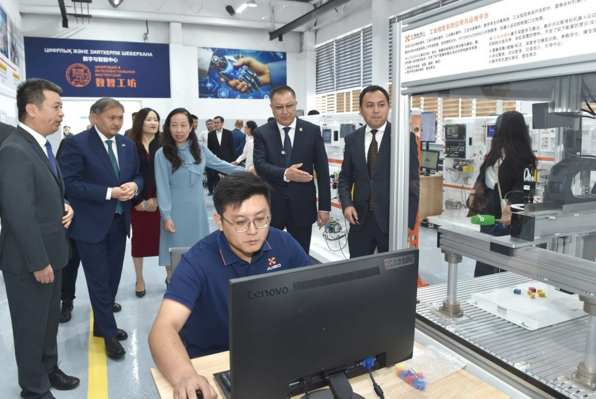 Мәртебелі меймандарды ректор Жансейіт Түймебаев қарсы алып, заманауи кешен жұмысымен таныстырды. Университет басшысы орталықтың цифрлық инженерия мен өнеркәсіптік робототехниканы меңгеруге мүмкіндік беретін озық білім беру кеңістігі екенін атап өтті. Мұнда студенттер өндірістің барлық процестерін сандық ортада үйренеді. Сонымен қатар өндірістегі әр кезеңді өзара байланыстыруды үйреніп, күрделі автоматтандырылған жүйелермен жұмыс істеуге дағдыланады.