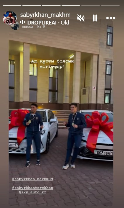 Бұл туралы боксшы Махмұд Сабырхан Instagram желісіндегі сторисінде жариялады. Інісі Төрехан екеуіне Шымкент қаласы әкімдігі автокөлік сыйға тартқан.