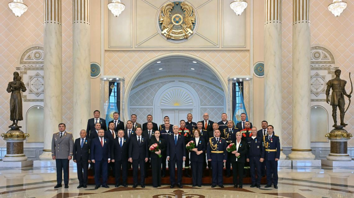 Жиын соңында Президент қызметтік борышын атқару барысында көрсеткен ерлігі мен жанқиярлығы үшін бір топ азаматқа мемлекеттік наградалар табыстады.