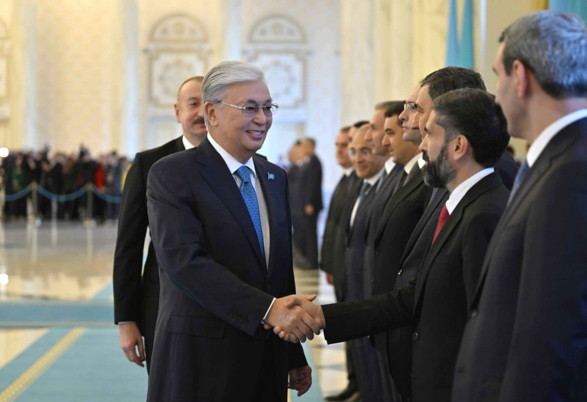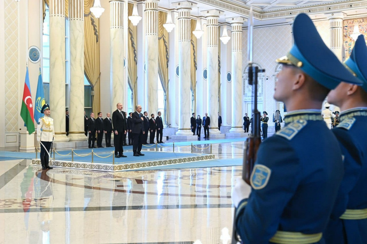 Қасым-Жомарт Тоқаев пен Ильхам Әлиев бір-біріне ресми делегация мүшелерін таныстырды. Құрмет қарауылы ротасының бастығы мемлекеттер басшыларына рапорт берді. Бұдан соң екі елдің әнұрандары орындалды.