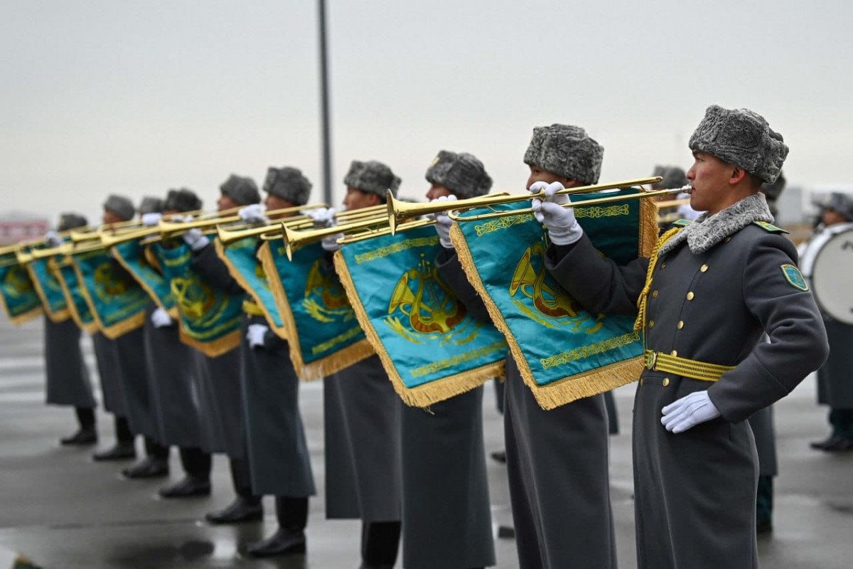 Астана халықаралық әуежайында мәртебелі мейманның келуіне орай Құрмет қарауылы сап түзеді.