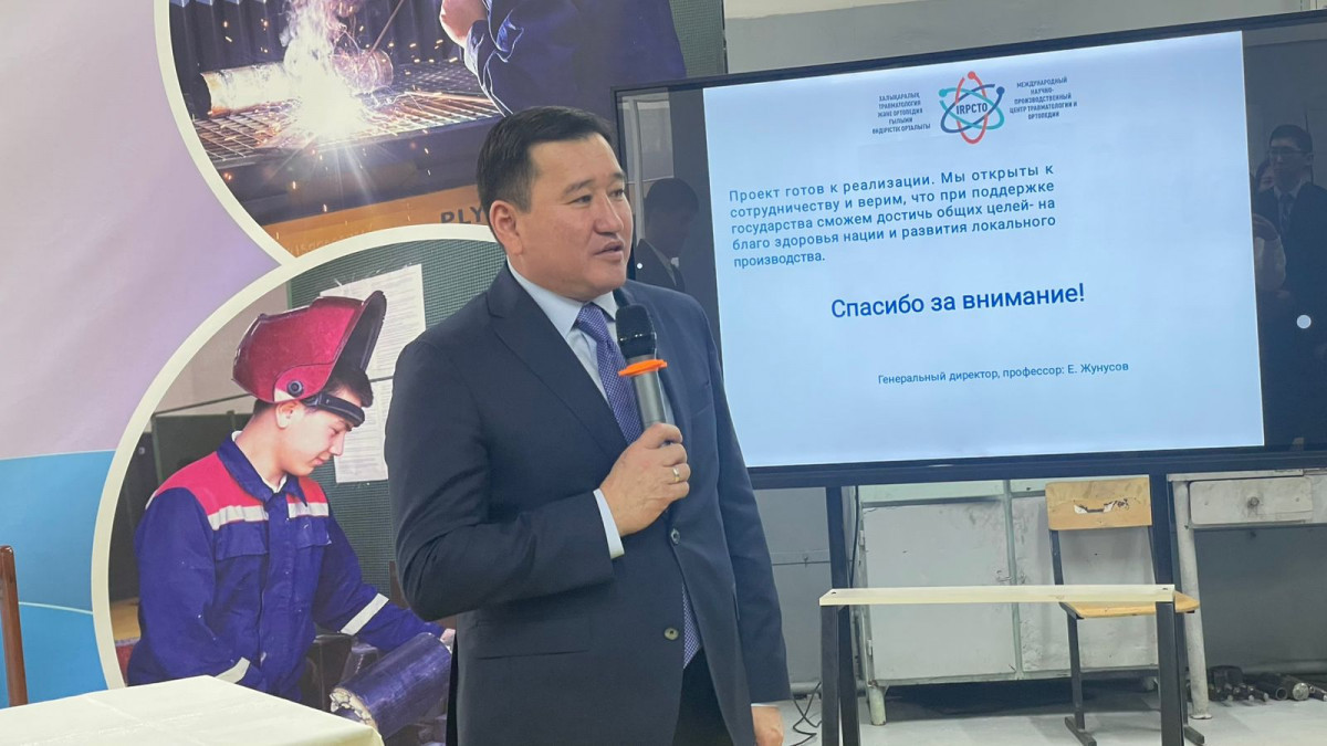 – Бүгінде біз Қазақстан ғана емес, Орталық Азия бойынша тұңғыш рет травматология және ортопедия бағыты бойынша арнайы медициналық техника, медициналық өнімдерді шығара бастадық. Бұл – өндірістің ең күрделі деңгейі. Нақты айтсақ, ауруханалардағы ота жасау кезінде қажетті үстелге қоятын ортопедиялық тіркеме (приставка) адам жансақтау бөліміне түскенге дейінгі аралықта сынған сүйекті бекітуге көмектеседі. Яғни, адамның өмірін сақтап қалуға, тез сауығуына қажет құрал. Мәселен, пациенттің қол-аяғы не болмаса жамбасы сынған кезде арнайы құрылғы салынады. Біз соны да жасаймыз. Титаннан, арнайы медициналық стальдан шығарылады. Өте сапалы сүйектің үстінен қойылатын анатомиялық пластиналар, сынған сүйекті бекітетін бұрандалар (винт), қосымша тартатын стерженьдік механизм, – деді медицина ғылымдарының докторы, профессор Ерсін Жүнісов.