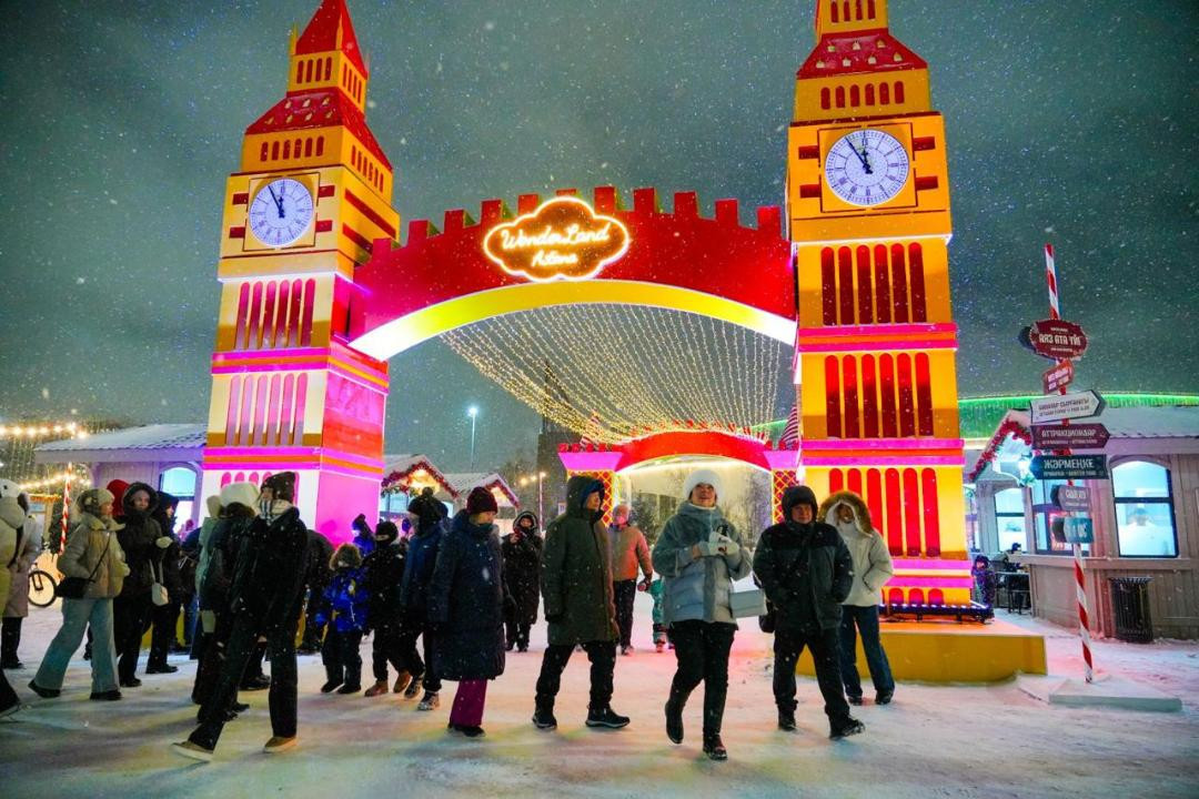 Қала аумағындағы мерекелік алаңдарда мұз айдындары, сырғанақтар, шағын сәулет нысандары, фотоаймақтар мен түрлі ойын-сауық алаңдары ұйымдастырылды.