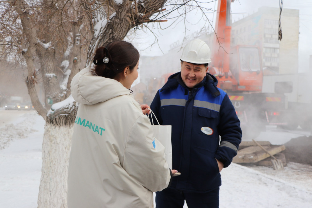 Олардың қатарында күннің суығына қарамастан жұмыс істейтін коммуналдық қызметкерлер, жолаушыларды тасыған автобус жүргізушілері, ғимараттарды 24/7 бақылайтын күзетшілер мен курьерлер бар. Астана қаласындағы Жастар қанатының белсенділері олардың жұмысын елеп-ескеріп, құттықтап, имидждік сыйлықтарын табыстады.