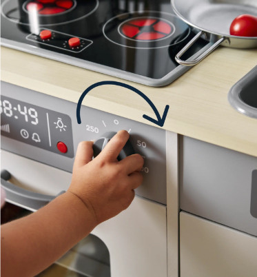 Ағаштан жасалған конструкция шағын, бірақ нағыз ас үйдің нұсқасы. Жарық және дыбыс эффектілері ойынды шынайы ете түседі.