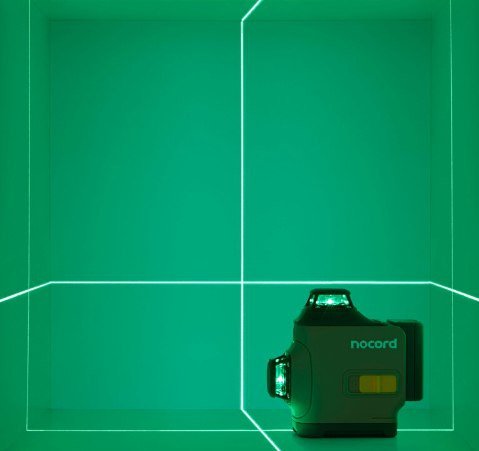 Nocord моделі қабырға, еден, төбе бағытында бірден жұмыс істеуге мүмкіндік беретіндей етіп 360 градусқа үш лазерлік жазықтық түсіреді. Бұл плитка төсеу, жиһаз немесе декор орнату кезіндегі белг салуды айтарлықтай жеңілдетеді.
