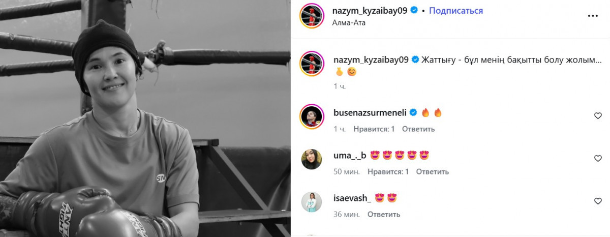 Боксшы Назым Қызайбай әлеуметтік желіде жазба жариялады, – деп хабарлайды Aikyn.kz.