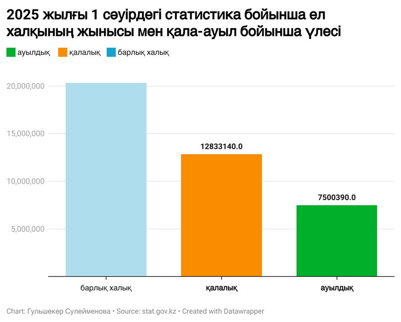 2025 жылғы 1 сәуірдегі ресми статистика бойынша ел халқының 12,8 миллионы – қалалықтар, ал 7,5 миллионы ауылдық жерде тұрады. Яғни халықтың үштен екісінен астамы қалада шоғырланған. Бұл урбанизацияның қарқыны күшейгенін көрсетеді.