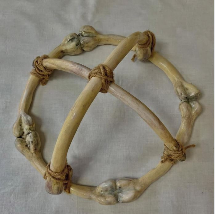 – Мен түрлі материалмен, соның ішінде керамикамен жұмыс істегенді ұнатамын. Сонымен қатар кескіндемемен айналысып, графикалық туындылар дайындаймын. Өз жұмыстарымда мен сүйек бейнесін қазақтың дәстүрлі ою-өрнектерімен астарластырып, жаңа бір қабаттар түземін. Халқымызда, әсіресе, зооморфтық және өсімдік тектес өрнектер кең тараған. Осы өрнектердің мағыналық жіктелуі мен иерархиясына деген қызығушылық соңғы бірнеше жылда ғана қайта жандана бастады. Меніңше, төл ою-өрнегіміз бен сүйек бейнесін тоғыстырудың символдық мәні зор. Себебі бұл екеуі – мен үшін мәдениетіміздің ең негізгі екі құрамдас бөлігі. Өз шығармашылығымда осы екі құндылықты біріктіру арқылы ортақ бір үндестік іздеймін, – дейді кейіпкеріміз.