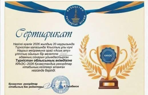Шара барысында Қазақстанның КИнЭС рекордтар кітабының ресми өкілі Бақытжан Тастүлеков арнайы сертификатты табыстап, тарихи жетістікті ресми түрде растады.