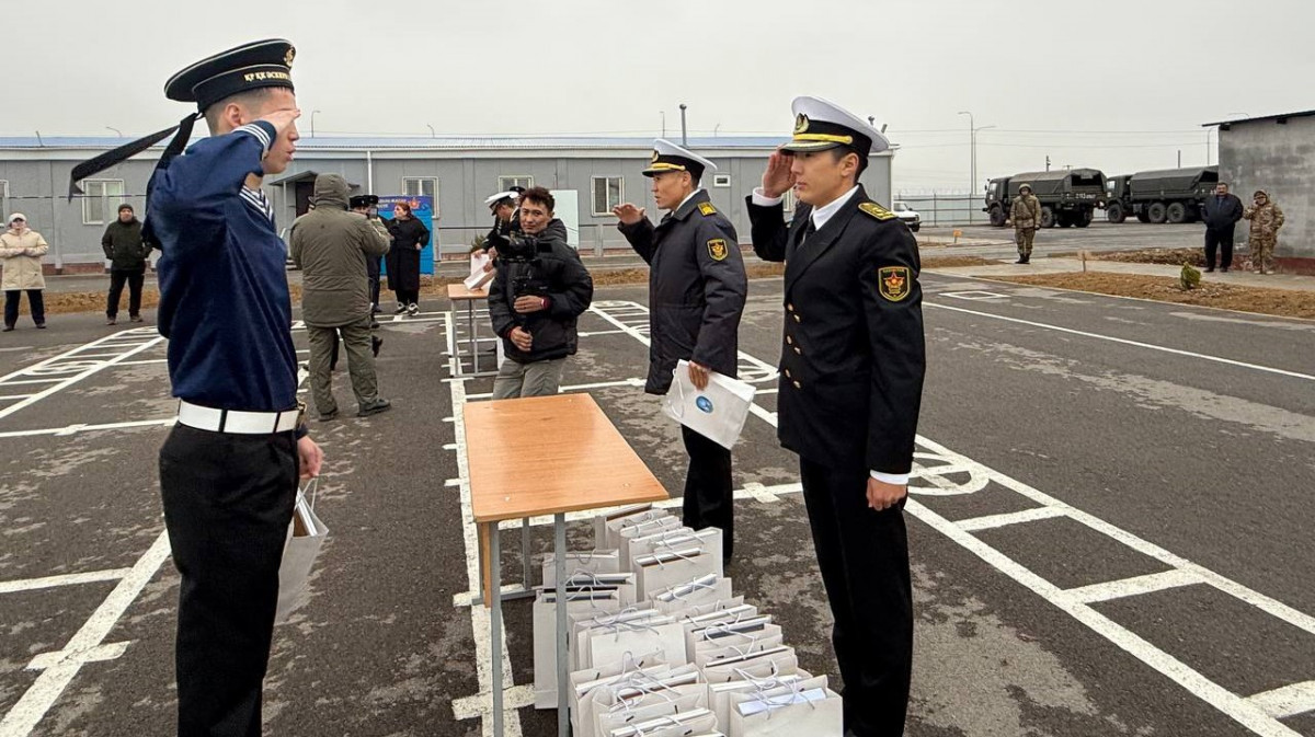 Десанттық шабуылдау батальонында мерзімді қызметін өтеген әскери теңізшілердің Жауынгерлік тумен қоштасу салтанатты іс-шарасына қатысты.