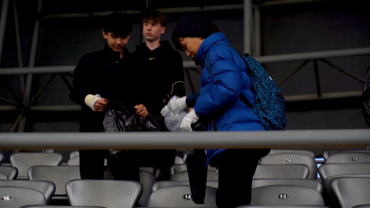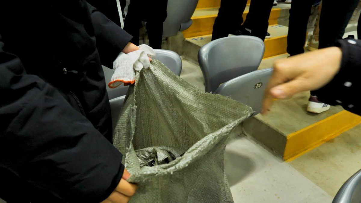 Ойын барысында жанкүйерлер экологиялық акцияға қатысты.
