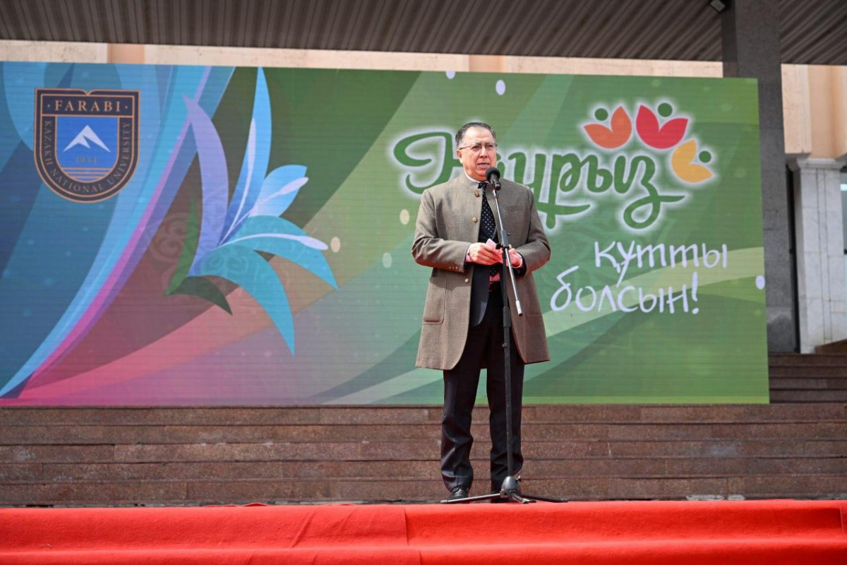 Мерекенің ашылуында ҚазҰУ-дың Басқарма Төрағасы – Ректор Жансейіт Түймебаев жиналғандарды Ұлыстың ұлы күнімен құттықтады. Өз сөзінде ректор ҚазҰУ-да өтіп жатқан мерекелік іс-шараның философиясы «Таза Қазақстан» идеясымен тікелей байланысты екенін жеткізді.
