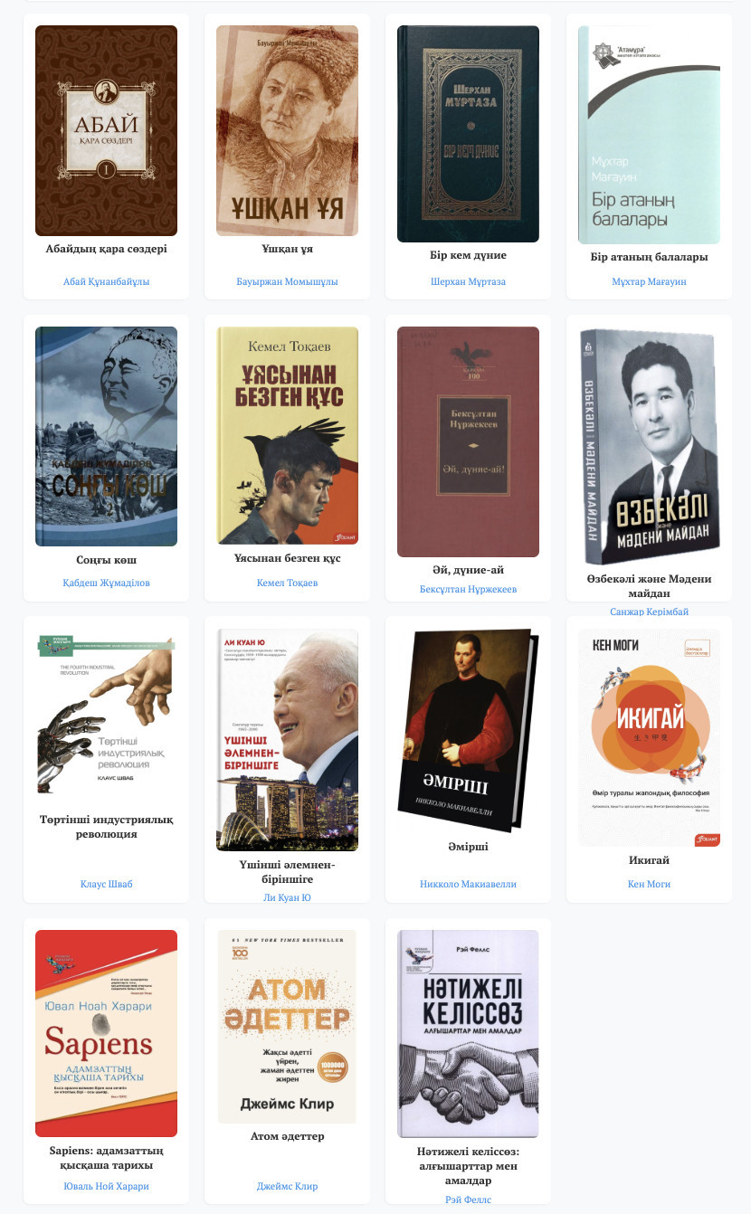 Алты ай бойы қатысушылар арнайы сарапшылар комиссиясы іріктеген 15 кітаптан оқып шықты. Тізімге Абай Құнанбайұлы, Мұхтар Әуезов, Бауыржан Момышұлы, Ли Куан Ю, Томас Сибель секілді авторлардың еңбектері енді.