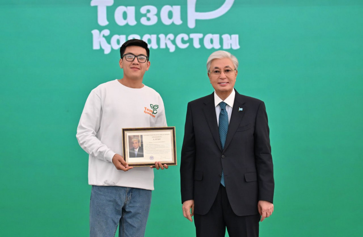 Артынан Мемлекет басшысы «Таза Қазақстан» акциясына белсене қатысып, Отан алдындағы адалдығын нақты ісімен көрсеткен бір топ азаматты марапаттады.