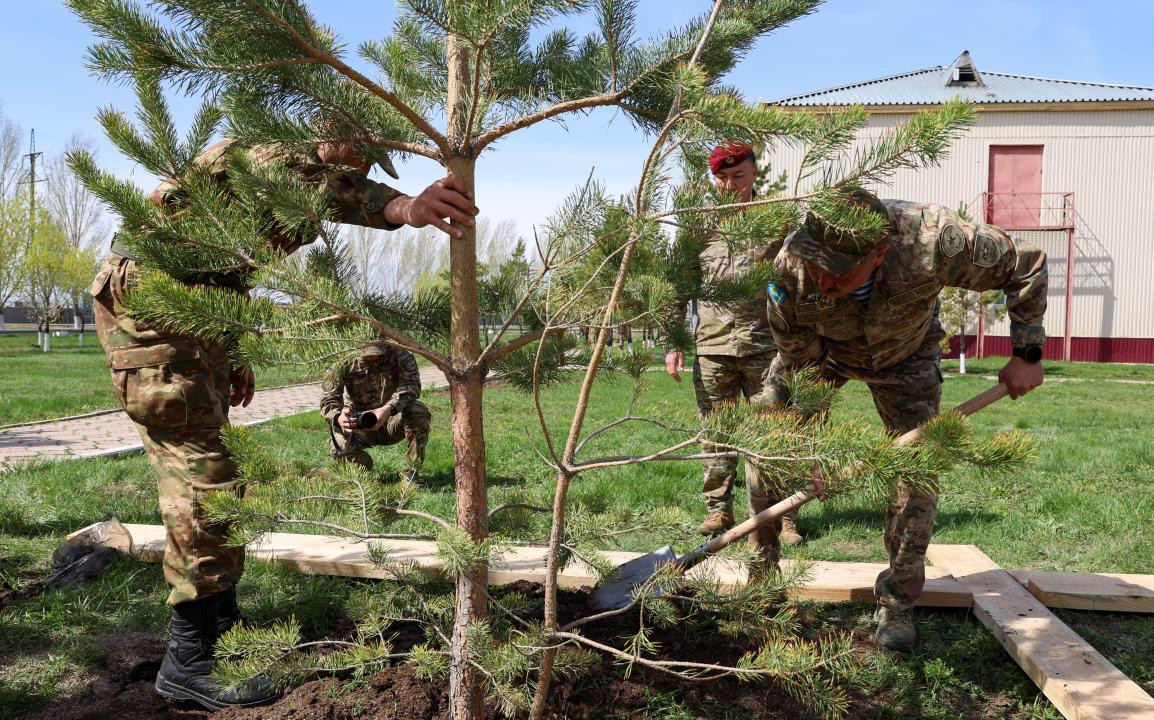 Министр сарбаздармен, сержанттармен және офицерлермен бірге бөлім аумағында ағаш көшеттерін отырғызып, қоршаған ортаға ұқыпты қараудың жеке үлгісін көрсетті. Ол экологиялық бастамалардың маңызын атап өтіп, әрбір әскери қызметші тазалық пен тәртіпке жауапты екенін өз ісімен дәлелдеді.
