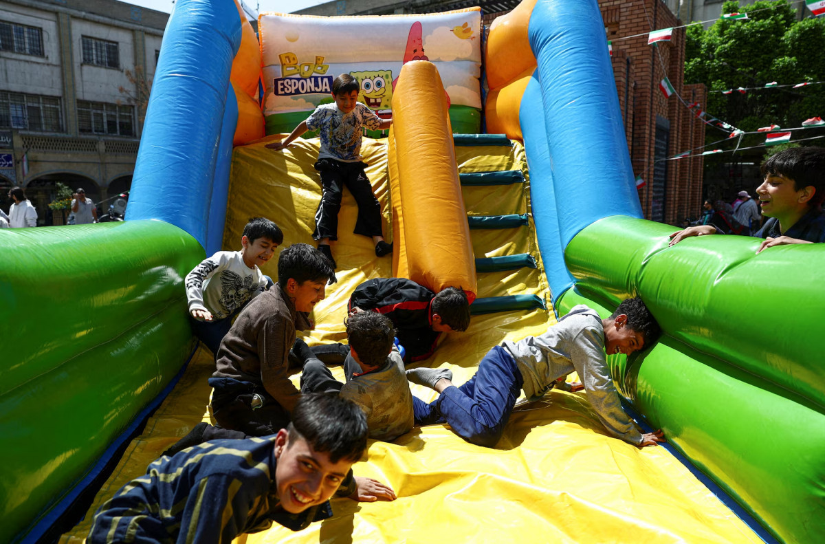 Ирандық балалар АҚШ пен Иран арасындағы жалғасып жатқан бітім аясында Тегеран базарында ойнап жүр, Тегеран, Иран, 21 сәуір. Маджид Асгарипур/WANA