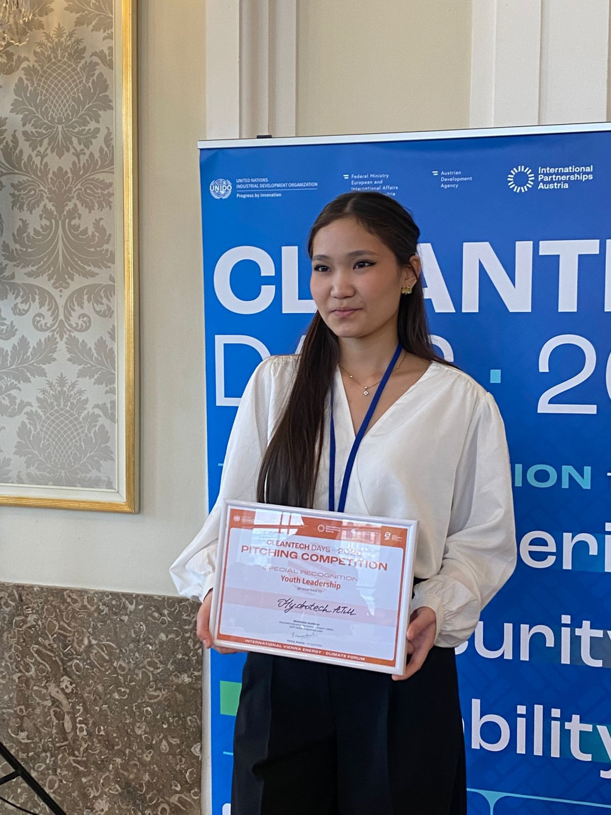 – Дана, марапатыңыз құтты болсын! HydroTech стартапы GCIP Global (Cleantech Innovation Programme) бағдарламасының жаһандық финалында үздік үштігіне кіріп, Венада өткен Cleantech Days 2026 халықаралық алаңында арнайы наградасымен марапатталдыңыз. Оның елімізге берері не?