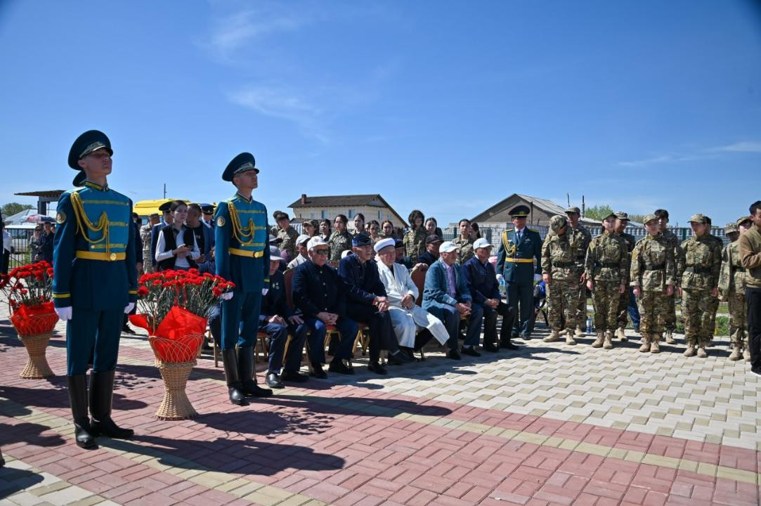 Осындай маңызды іс-шараға ҚР Қорғаныс министрлігі мен Қосшы қалалық ішкі саясат бөлімінің өкілдері, еңбек және соғыс ардагерлері мен мектеп оқушылары қатысты. Ал, 102 жастағы Ұлы Отан соғысының ардагері Нұрқасым Әжітаевтың келуі ұрпақтар сабақтастығы мен Отан қорғаушылардың ерлігіне деген шексіз құрметтің айқын көрінісі болды.