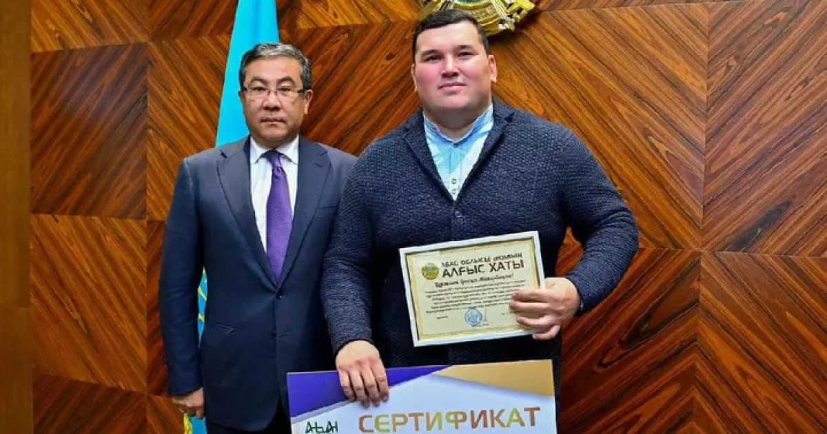 Жарыстың қола жүлдегері Саят Шәмшиевті марапаттады.