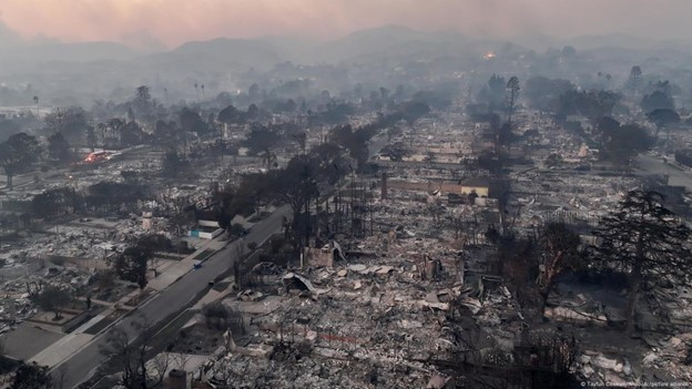 Тұтастай өртеніп кеткен Pacific Palisades ауданы. Фото dw.com сайтынан алынды. Автолығы: Anadolu / Tayfun Coskun