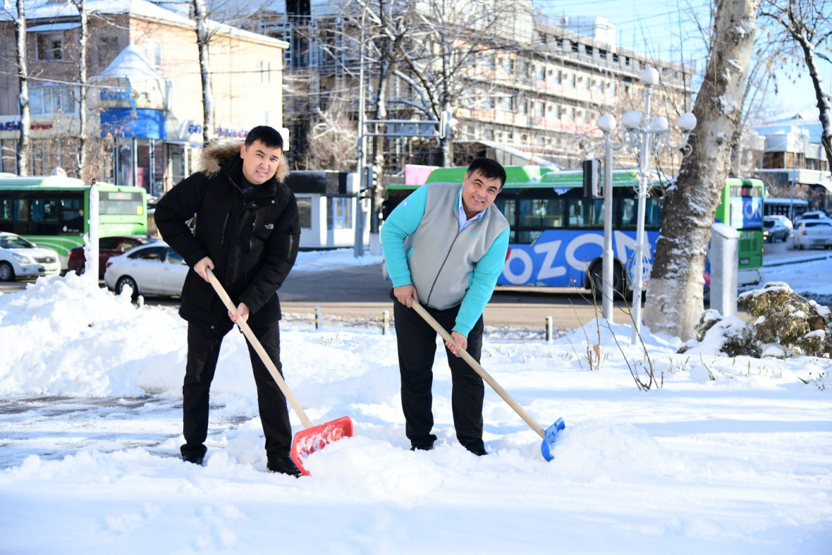 Шымкент қаласында партияның қалалық және аудандық филиалдарының қызметкерлері №8 шағынауданындағы тұрғын үйлердің аулаларында қар тазалау жұмыстарын жүргізді. Олар балалар алаңындағы мұзды ойып, кіреберістердің жанындағы орындықтарды және автотұрақ орындарын тазалады. Бұл арқылы партия мүшелері жергілікті тұрғындарға көмек беріп қана қоймай, коммуналдық қызметкерлердің қиын еңбегін қолдауға да үлес қосты.