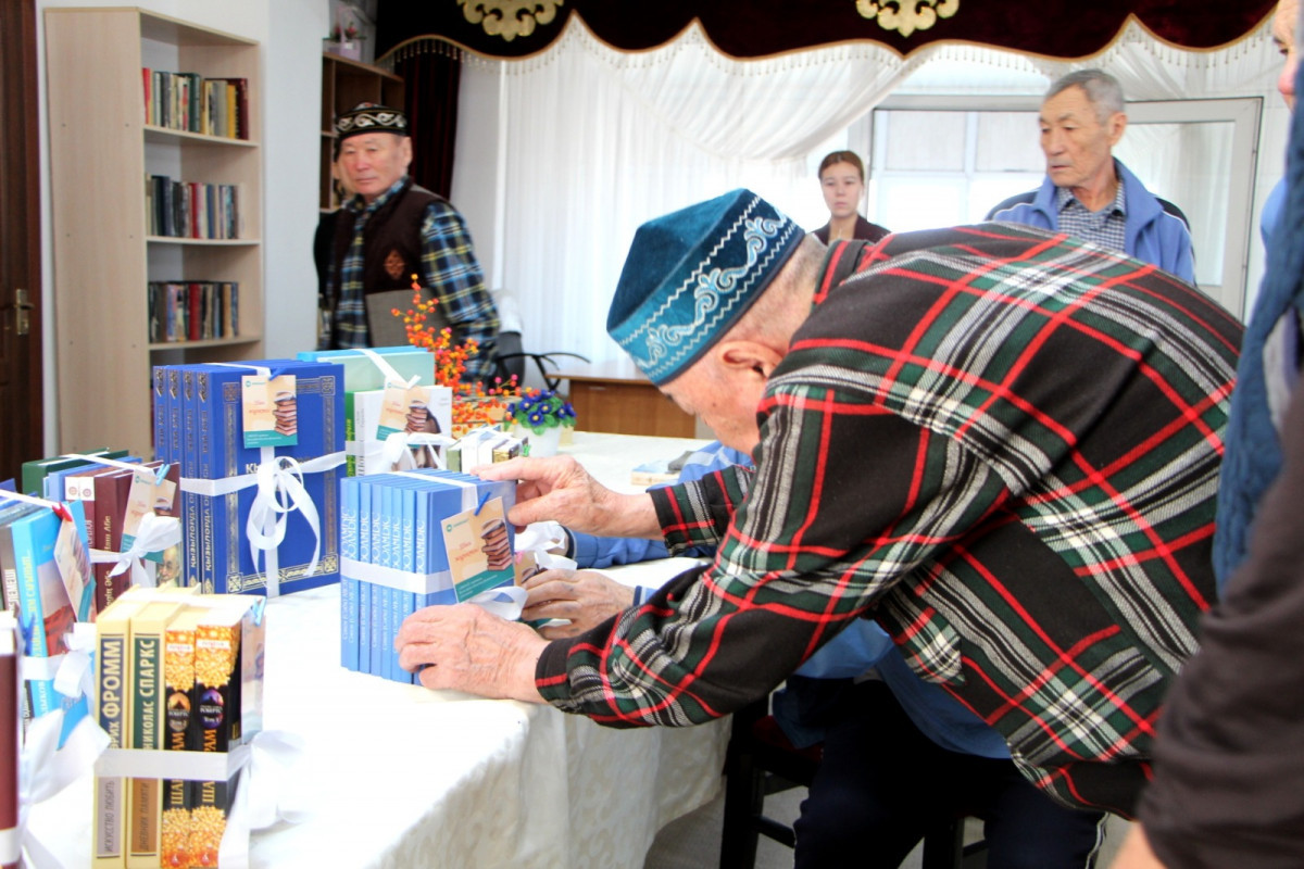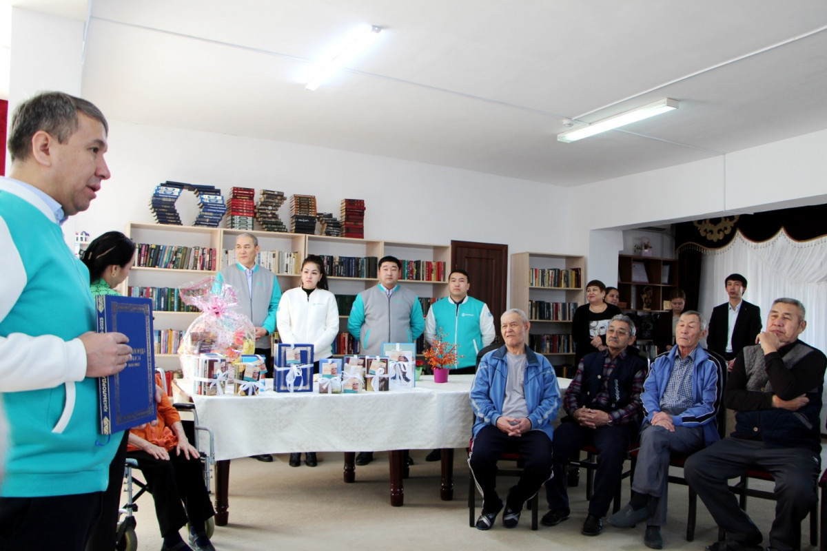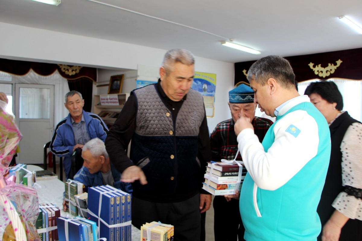 Өз кезегінде ардагерлер қауымы үлкеннің жағдайын білісіп, құрмет пен сыйластықтың белгісі ретінде сыйлыққа кітап ұсынып жатқан партия өкілдеріне ақ батасын беріп, орталық кітапханасының қорына сыйға тартқан кітаптар үшін шексіз алғыс білдірді.