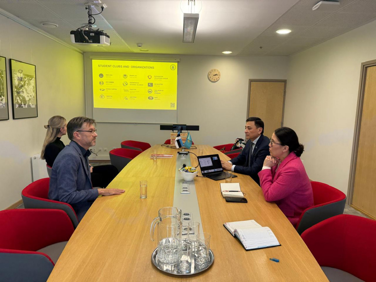 Таллин университетінің ректоры Тыну Виикпен және Педагогикалық ғылымдар мектебінің деканы Тея Оунмен өткен кездесуде педагогикалық кадрларды даярлау мәселелері талқыланды. Атап айтқанда, білім беру бағдарламаларын әзірлеу, бірлескен ғылыми жобаларды дамыту, ұзақмерзімді өзара тиімді әріптестік, сондай-ақ студенттер мен оқытушылар алмасу перспективалары қарастырылды.