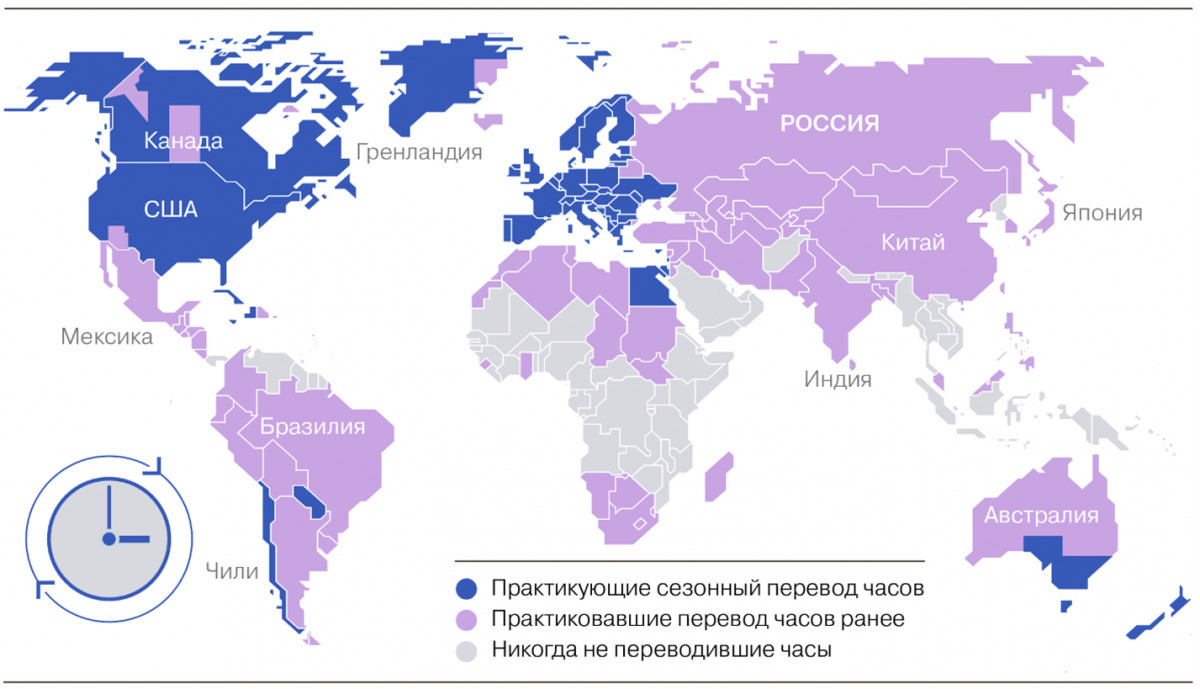 Америка мен Еуропа тұрғындары үшін келесі үш апта ішінде уақыт айырмашылығы аздап қысқарады. Инфографика kommersant.ru сайтынан алынды