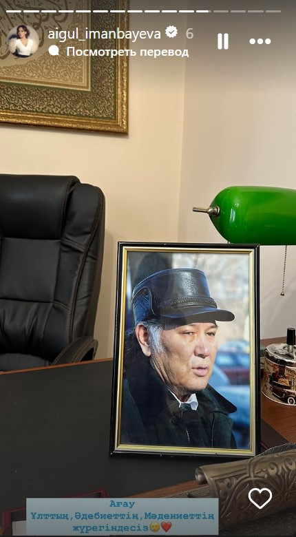 «Дулат ағамның кабинеті де, демалатын креслосы да бос… Ағау, ұлттың, мәдениеттің мәңгі жүрегіндесіз», – деп жазды Айгүл Иманбаева.