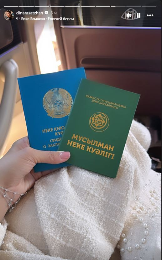 Ол Instagram желісіндегі stories-те неке қию куәлігі және мұсылман неке қию куәлігінің суретін жариялады. Ақ көйлек киген тележүргізуші Ерке Есмаханның "Еркелей беремін" әнін фонға қойған.